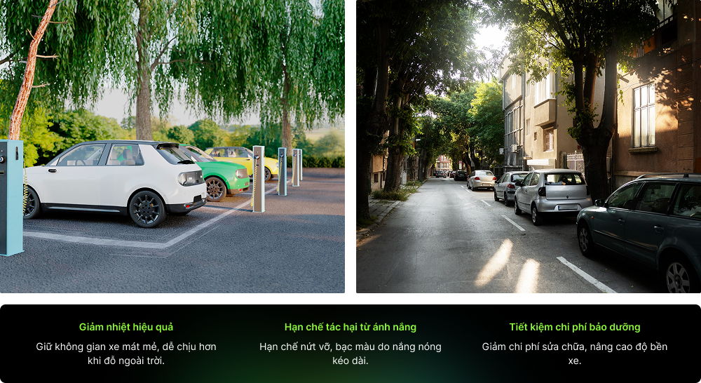 Đỗ xe dưới bóng râm không chỉ là phương pháp chống nóng ô tô hiệu quả mà còn rất tiết kiệm chi phí. Đặc biệt là khi nhiệt độ ngoài trời nắng lên đến 40 độ C, việc đỗ xe ngoài trời mà không có vật dụng che chắn gì có thể làm giảm đáng kể độ bền của lớp sơn và các nội thất trong xe.